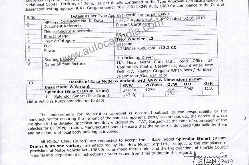 Back in June, Hero unveiled its first BS6-compliant two wheeler – the Splendor iSmart. No technical specifications were revealed then; and we still haven’t received a date on when the scooter will be available in the market. However, an online document from earlier this week has revealed some details of the new Splendor.