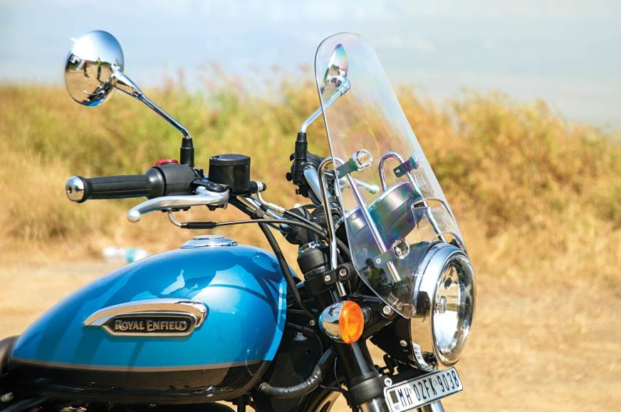 Royal Enfield has paid considerable attention to the finer details. The new rotary switchgear looks quite cool, and feels nice and clicky to use. The chrome mirrors are great and I love how the front brake lever merges with the rounded master cylinder. Another nice touch is how the hinge for the chrome fuel cap is hidden and can only be seen when the flap is lifted. Over at the rear, the single round brake lamp gets a neat LED light surround, while the bulb-illuminated indicators run old-school circular optic lines. The quality of the backrest and windscreen, which are both available as accessories on the lower variants is also very good.